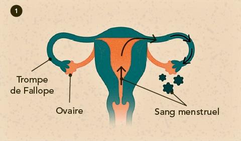 Le reflux menstruel : une partie du sang menstruel remonte par les trompes et se déverse dans la cavité abdominale. Ce sang contient des cellules endométriosiques susceptibles de s’implanter sur les organes voisins. Cette «menstruation rétrograde» n’explique toutefois qu’une partie des formes de la maladie.