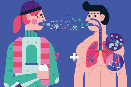 Une personne malade peut contaminer une personne saine par voie aérienne via les gouttelettes qu’elle projette lors de la toux, d’éternuements ou de postillons.