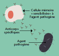 Plus tard, les agents spécifiques du système immunitaire pourront générer une réaction massive et rapide s’ils rencontrent de nouveau l’agent pathogène (antigène) responsable.
