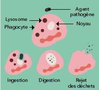 Si les barrières naturelles n’ont pas suffi, le système immunitaire non spécifique, dit « inné », entre en jeu pour apporter une réponse immédiate. Les phagocytes dévorent les agents pathogènes rencontrés.