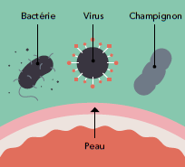 Les barrières physiques et chimiques, que représentent peau et muqueuses, empêchent les agents pathogènes de pénétrer dans l’organisme.