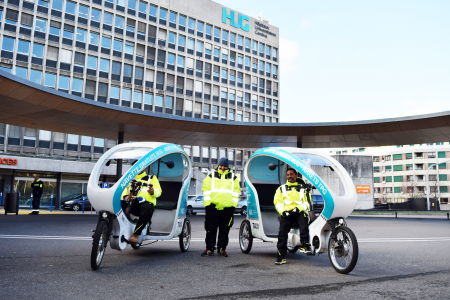 Suite à la fermeture, mi-septembre, de la rue Sautter, les arrêts de bus 1, 5 et 7 ont été déplacés et éloignés de l’entrée principale de l’hôpital. Pour faciliter l’accès des patients et visiteurs à mobilité réduite, les HUG ont mis en place une navette gratuite en vélo-taxi. Cette prestation très appréciée est financée par la Fondation privée des HUG et soutenue par la société TaxiBike, l’Hospice général et Genève roule. Plusieurs personnes en réinsertion ont intégré le projet et bénéficié d’une formation spécifique de chauffeur. La Ville de Genève a également aménagé un point de prise en charge, sur la rue Lombard, à proximité des arrêts TPG. Jusqu’en mai 2018, deux vélo-taxis assurent ce service, du lundi au vendredi, de 9 h à 17 h (tél. 078 410 19 41).